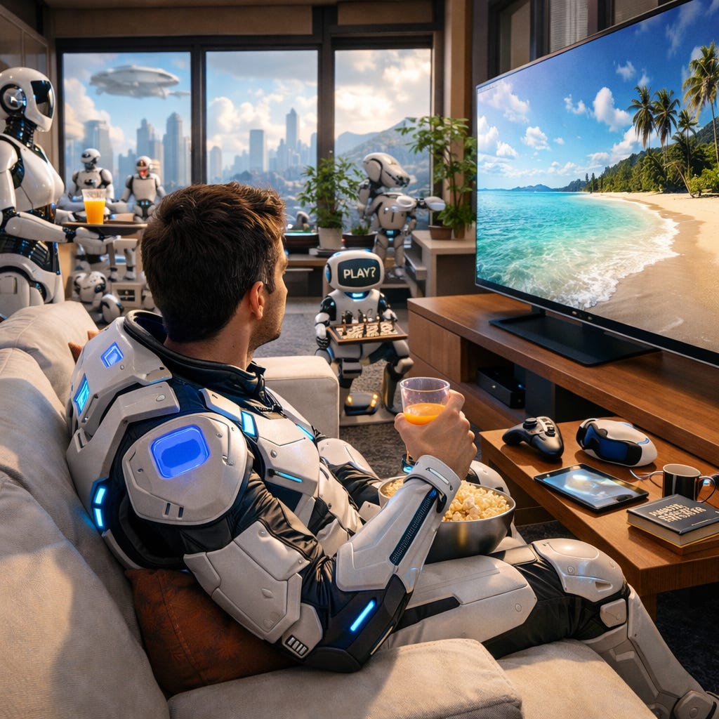 We are already at a point where robots and AI can perform many tasks previously done by humans. It is rational to replace humans with robots and automation. In such a scenario, people who own robots could become modern Solarians: they could live comfortably while robots produce everything they need, making GDP irrelevant. The problem is that Solaria had very few people. On Earth, we do not have this luxury. A glimpse of this reality is shown in another sci-fi masterpiece, The Hunger Games. We should replace human soldiers with robots though.